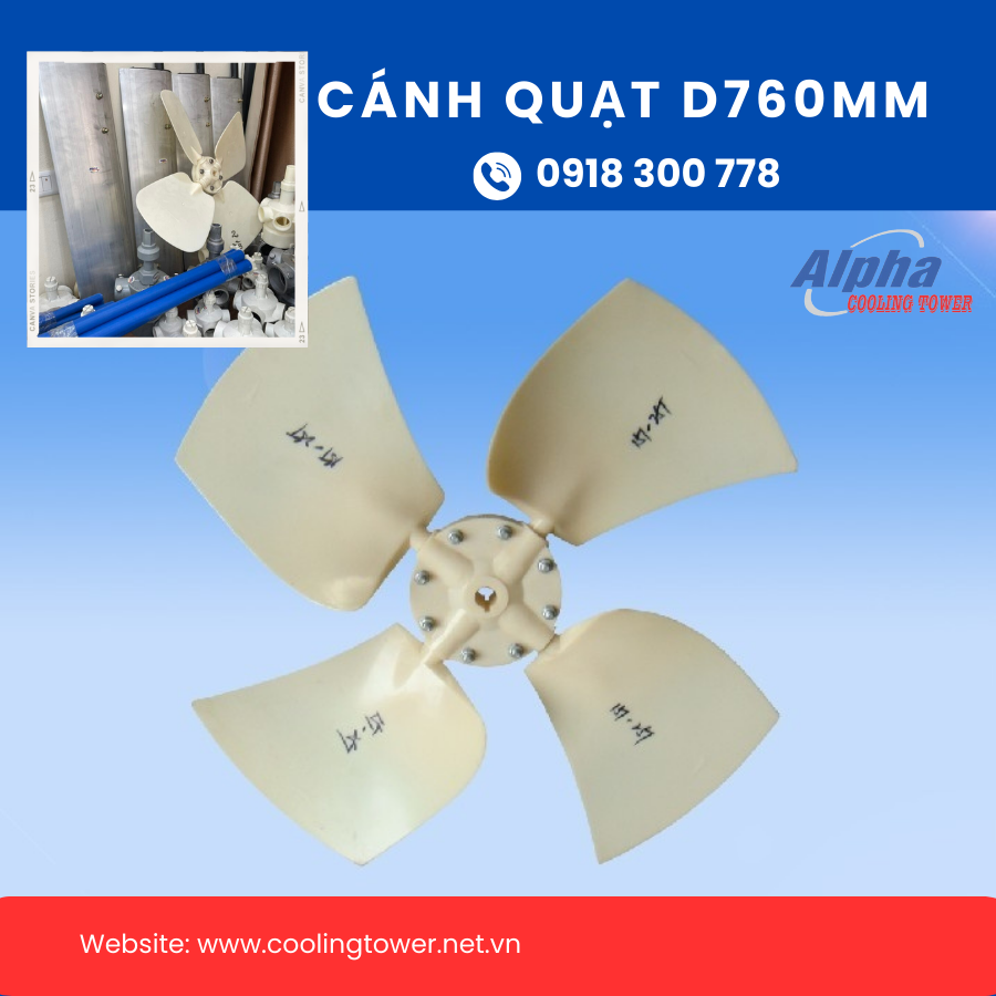 Cánh quạt D760mm là một bộ phận quan trọng trong hệ thống tản nhiệt, có nhiệm vụ tạo ra luồng không khí lưu thông để giúp làm mát các thiết bị, máy móc. Cánh quạt có thể được làm từ nhiều chất liệu khác nhau, như nhôm, đồng, nhựa,… và có nhiều loại khác nhau, tùy theo ứng dụng cụ thể.